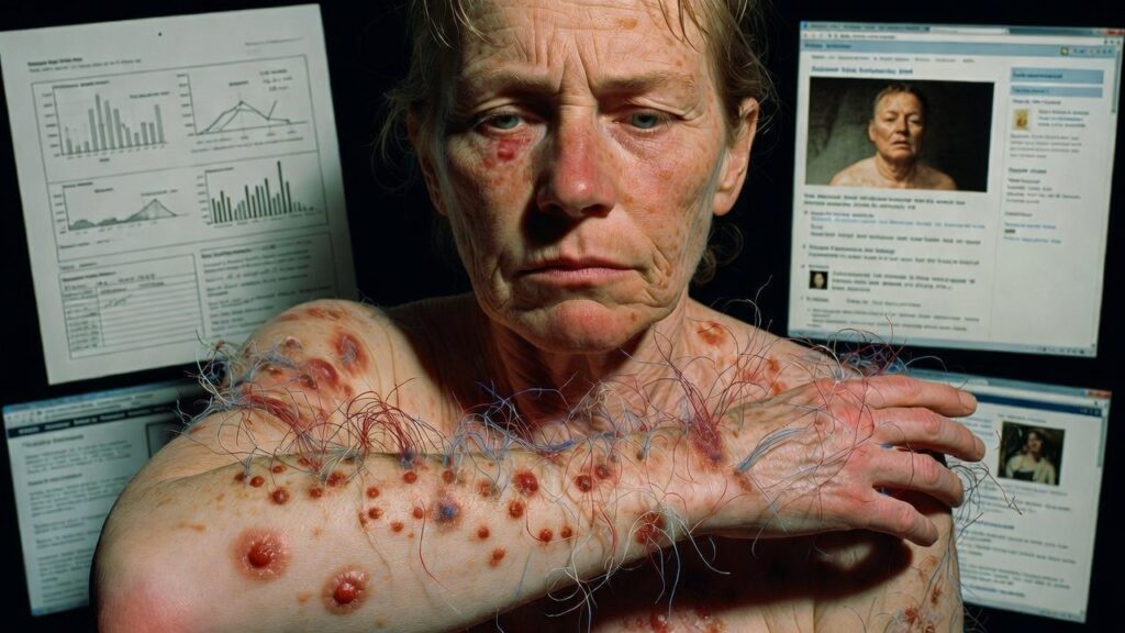 For many sufferers, the ordeal begins subtly. It might start with an unexplained itch or a prickling feeling on the arms, legs, or scalp. Over weeks or months, the sensations intensify, spreading across the body. Lesions appear—often self-inflicted from desperate scratching—and the fibers become visible, sometimes moving or changing color under light. Accompanying these skin horrors are profound systemic effects: crushing fatigue that leaves you bedridden, joint pain mimicking arthritis, brain fog that clouds thinking, sleep disturbances, and emotional despair. Quality of life plummets dramatically; a 2025 study in the British Journal of Dermatology revealed that patients with Morgellons report worse impacts than those with severe psoriasis, atopic dermatitis, or prurigo nodularis—conditions already notorious for their burden.